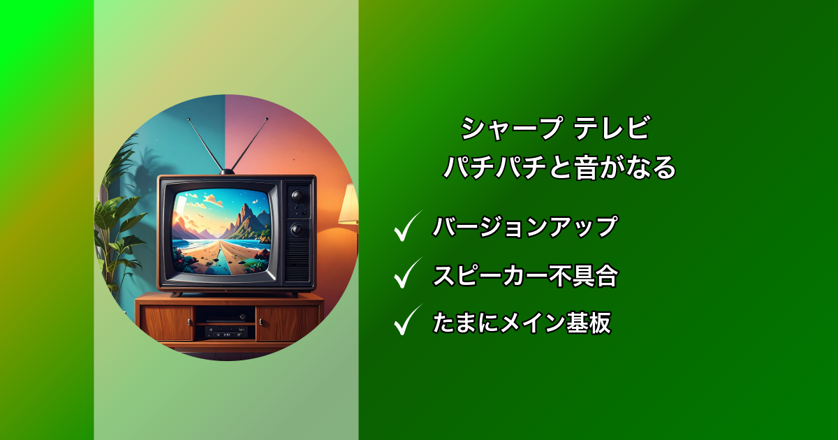テレビからパチパチ音がするという依頼内容で修理にお伺いしました。とりあえずバージョンアップをして症状改善で修理終わりかなと思っていたのですが、相手が高齢なお客様でシャープとアンドロイドのロゴの画面に頻繁になると言われましたのでその症状が本当なのであればメインの基板不良なので、その日準備がなかったのでそのまま帰りました。バージョンが上がってからは音の問題は解決しましたのでパチパチ音の原因はバージョンで別故障としてメインの基板も交換となりました。